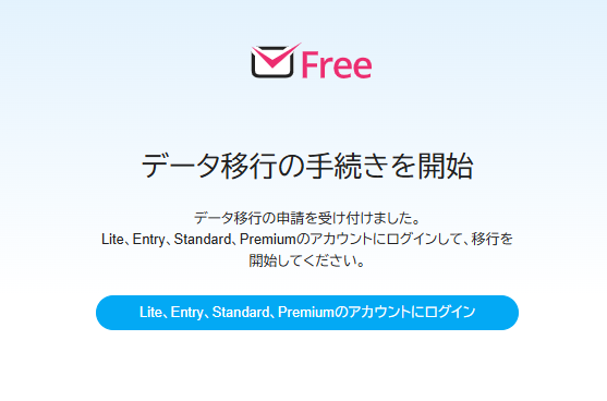 有料プランアカウントをお持ちでない場合、移行する前に有料プランのアカウント作成を行えます。作成後もう一度Freeの管理画面よりデータ移行の手続きを行ってください。