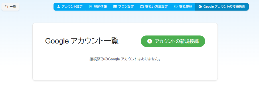 「Googleアカウントの接続管理」画面に変わりますので、「アカウントの新規接続」ボタンをクリックしてください。
