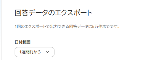 1.「日付範囲」が、エクスポートしたい回答の送信日の範囲に該当しているかどうか