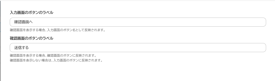 送信ボタンと確認画面へのボタンの文言を自由に編集することができます。